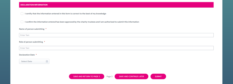 The final screen will ask the person submitting the online annual return to acknowledge and complete a few statement questions.