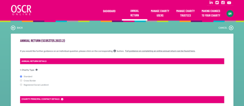 You will see in this section that the charity type will already be filled in. If the answer to this question is incorrect please contact OSCR.